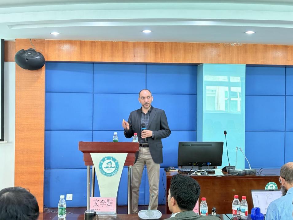 上海会场活动结束后,应学院盛情邀请,4名海外专家于10月23日来到暨南大学珠海校区,在国际能源学院开展实地调研与学术交流。当日,学院党总支书记肖云、副院长邓慧、副院长柯毅明、党总支副书记文李黠代表学院,向远道而来的嘉宾致以最热烈的欢迎和最诚挚的感谢。分论坛珠海会场由学院副教授关培源主持,部分骨干教师及研究生代表全程参与,现场互动氛围浓厚。