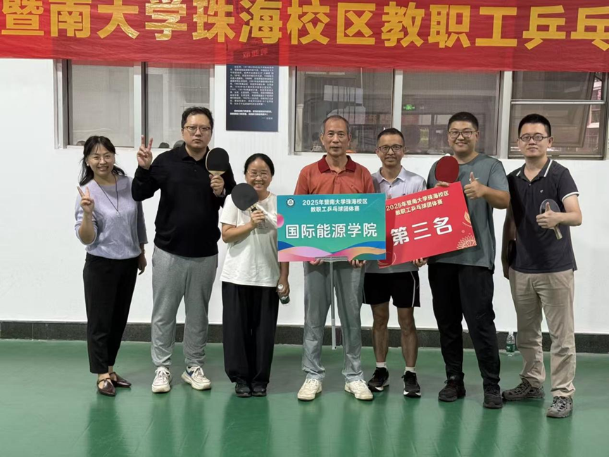 11月13日,暨南大学珠海校区教职工乒乓球团体赛在校区乒乓球馆举行。我院教师组队参赛,与校区的学院机关5支代表队同台竞技,取得团体比赛第三名佳绩。
