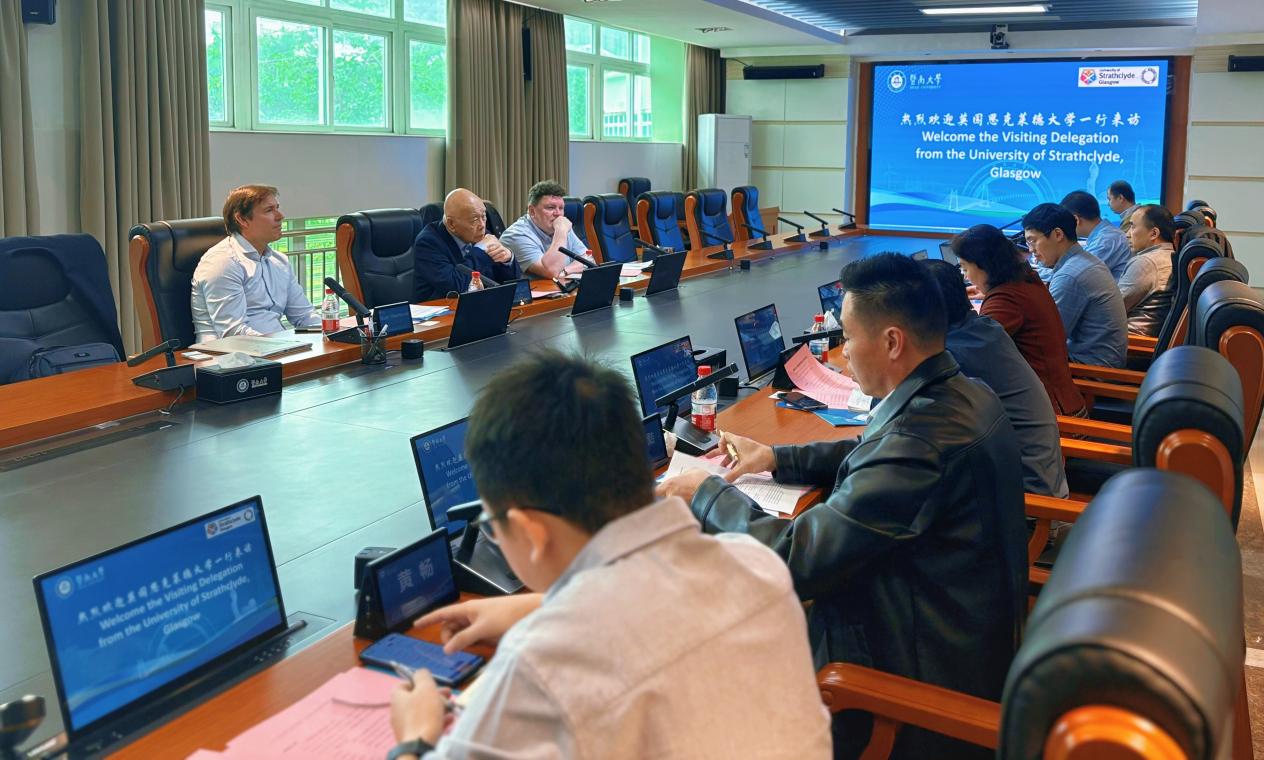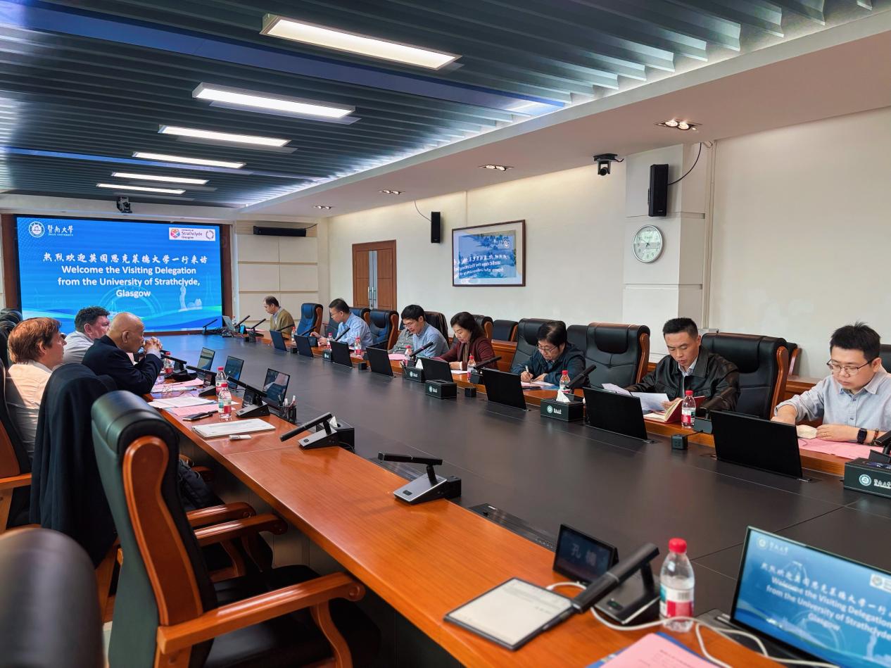 近日,英国思克莱德大学代表团一行访问了暨南大学国际能源学院,双方就国际教育合作项目进行了深入交流与探讨。此次访问旨在加强两校在工程领域的合作,共同推动教育国际化进程。